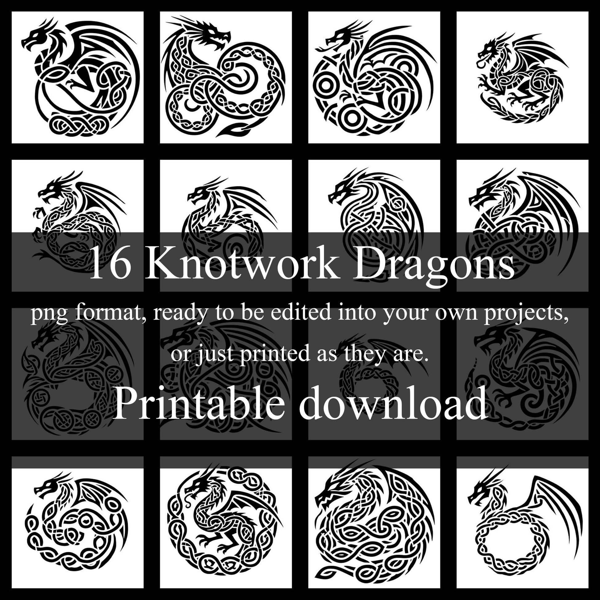 This bundle contains 16 individual images of Knotwork Dragons, in a semi Celtic-Nordic Medieval style.
