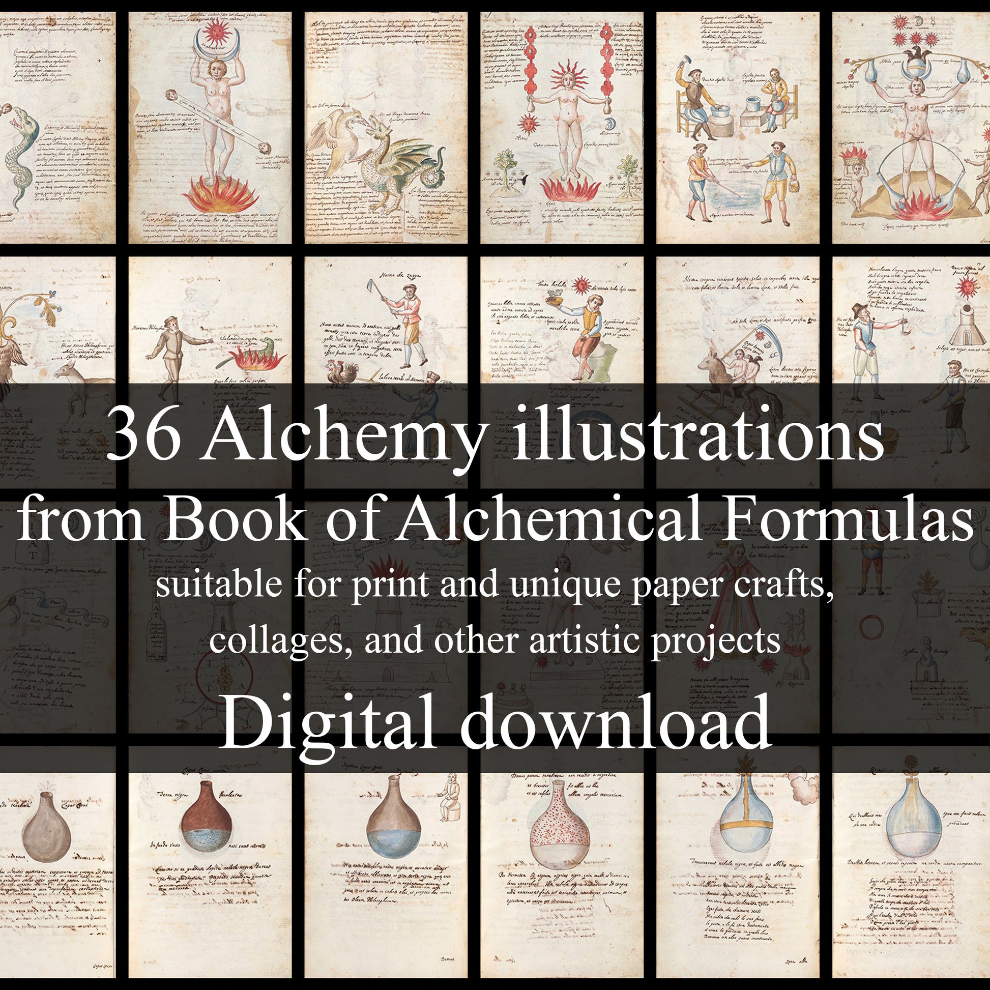 This bundle contains 36 individual images of Alchemy illustrations from Book of Alchemical Formulas.
