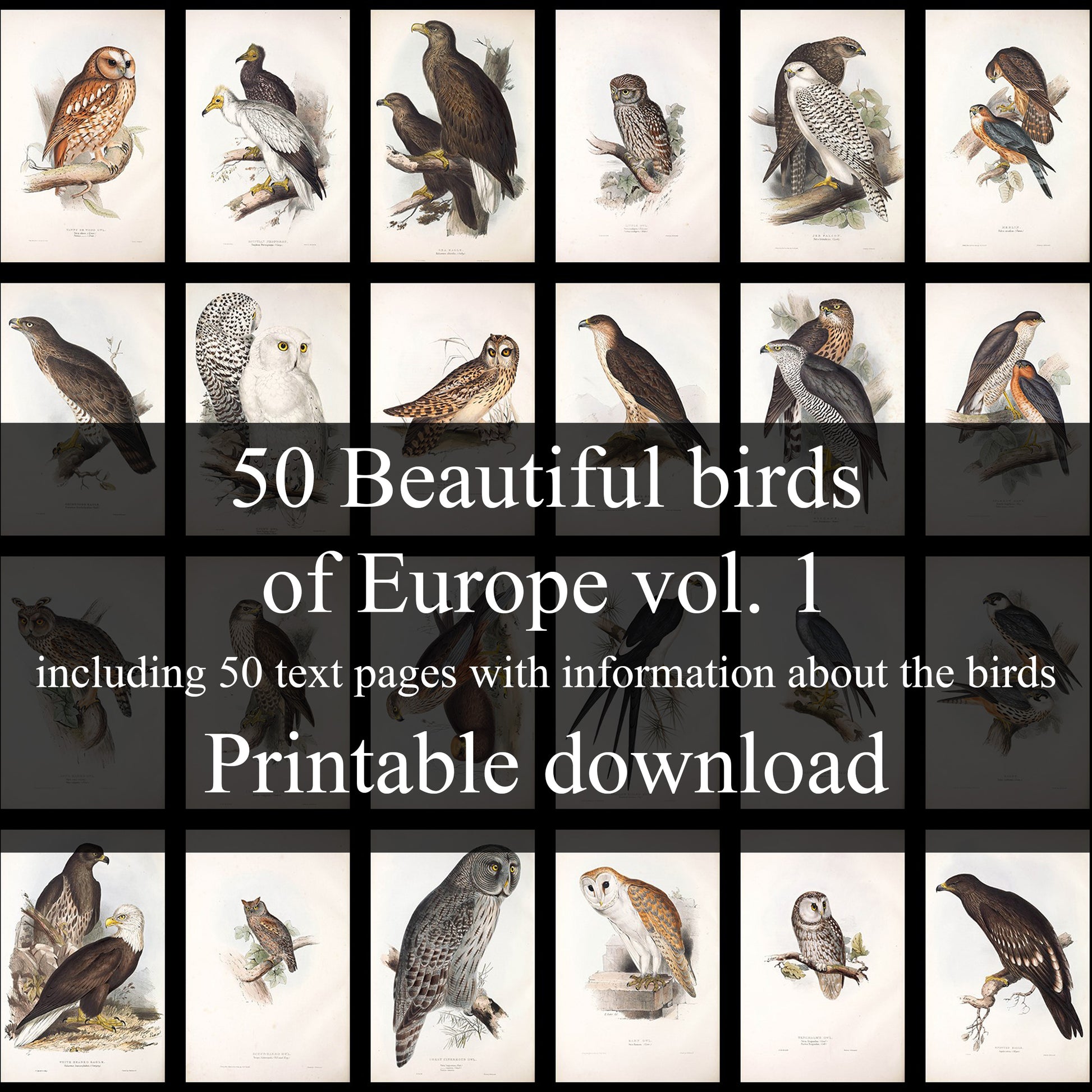 Experience the wonder of Europe's avian diversity with this bundle "50 Beautiful birds - The Birds of Europe Vol. 1 - Complete collection", including all 50 images from the 1837 old book.