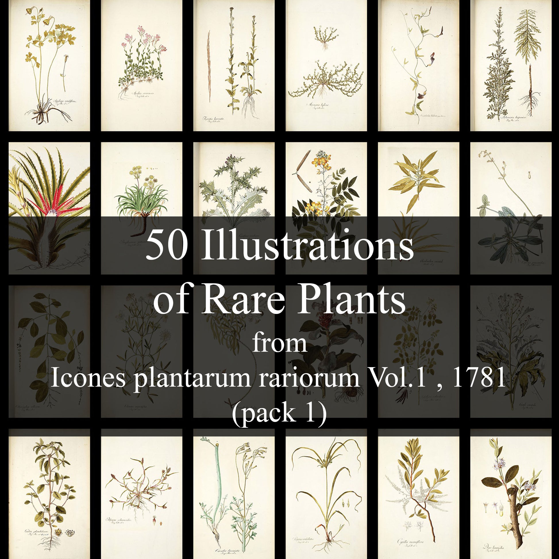 50 Illustrations of Rare Plants from the exquisite collection "Icones Plantarum Rariorum vol.1, 1781" a treasure trove of rare botanical illustrations, now available for enthusiasts and scholars alike. This collection showcases images of unique and seldom-seen plants, or at least seldom-seen at the time the work was made.