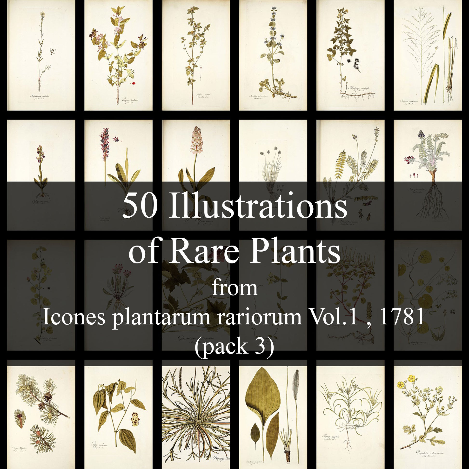 50 stunning illustrations from the remarkable "Icones Plantarum Rariorum vol.1, 1781." This special series features some botanical illustrations of rare plants (according to the title), perfect for both enthusiasts and academics. The images highlight extraordinary plants that were rarely seen in nature during the time they were originally published.