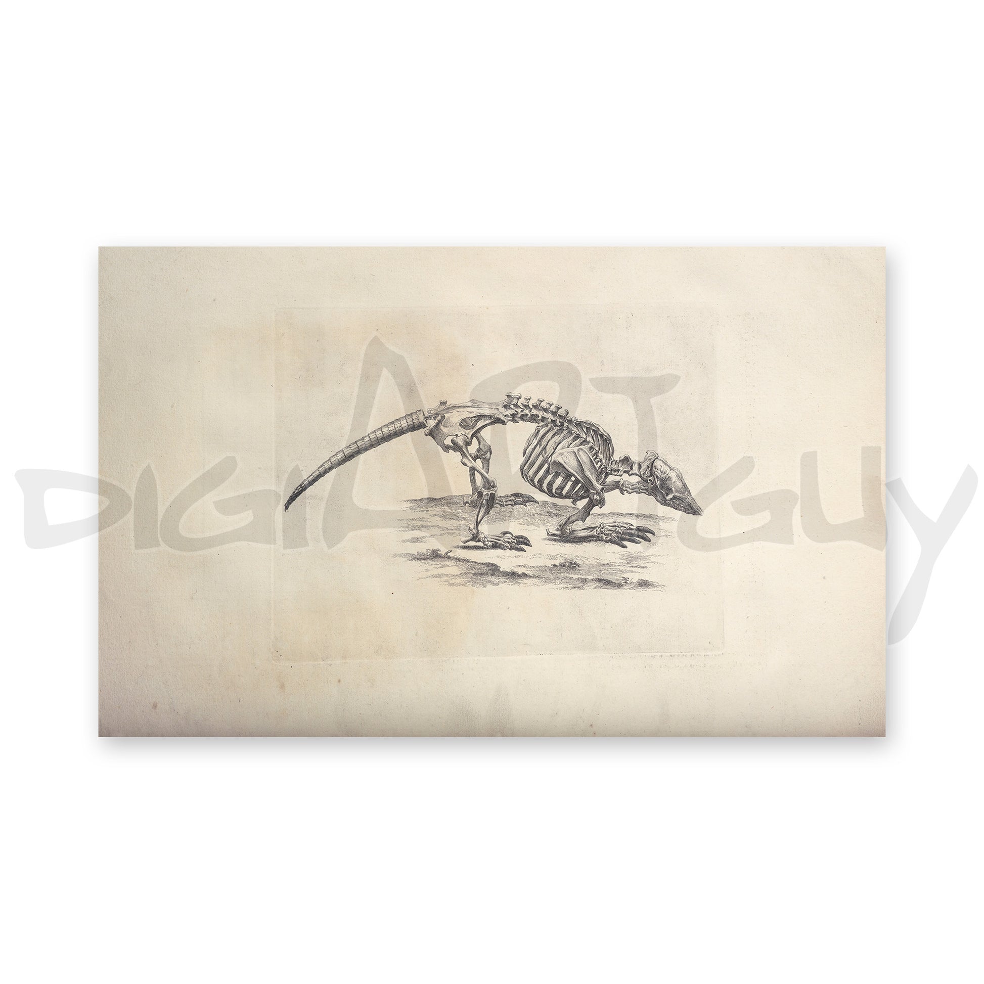 This amazing vintage illustration of the skeleton of an armadillo, was found in a beautiful old book on anatomy and osteology, made in 1733. Here it was photographed, digitally processed and enlarged, so you can print it yourself and use it as poster or in your many projects.