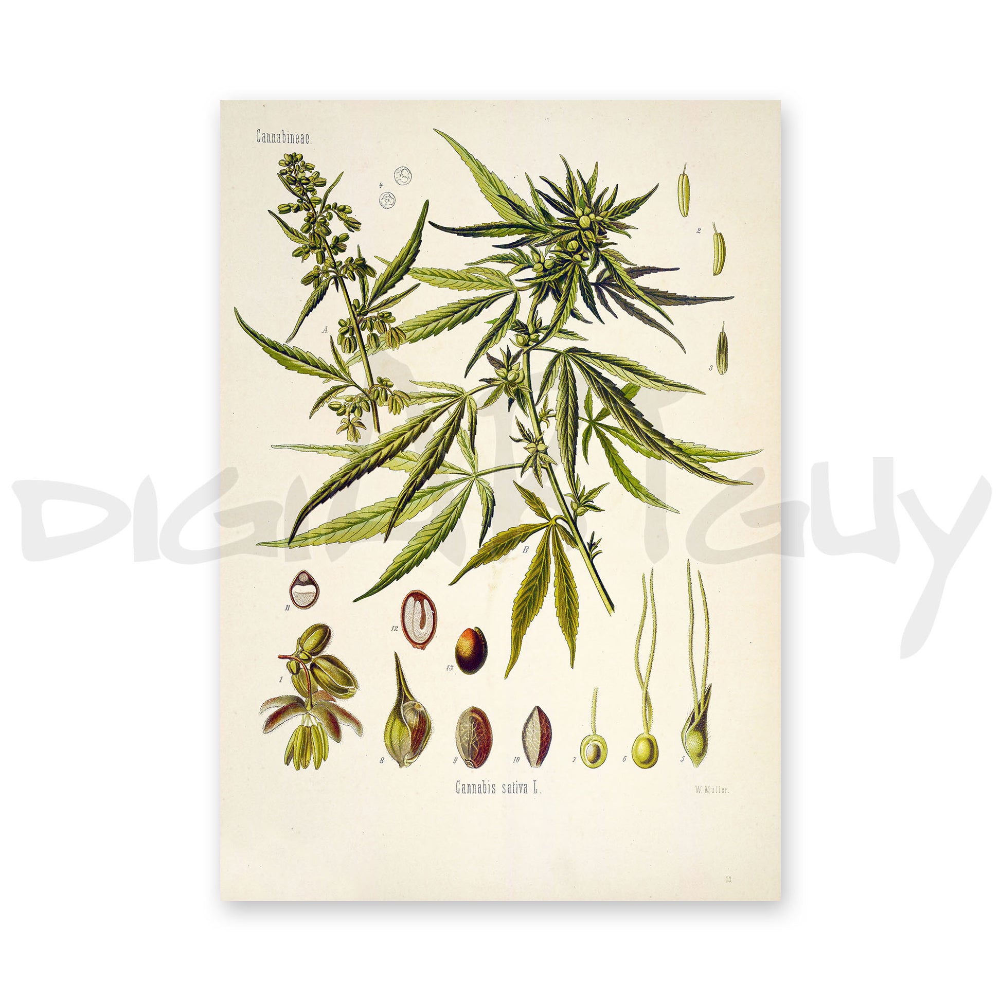This digital image showcases the Cannabis Sativa plant, commonly known as Hemp. Originally published in 1887 in Köhlers Medicinal Plants, the image has been meticulously enhanced and upscaled to provide the highest quality resolution possible. It is an ideal addition to any private or commercial project, including the creation of posters or other visual materials. With its stunning clarity and detail, this image is sure to captivate and inspire.