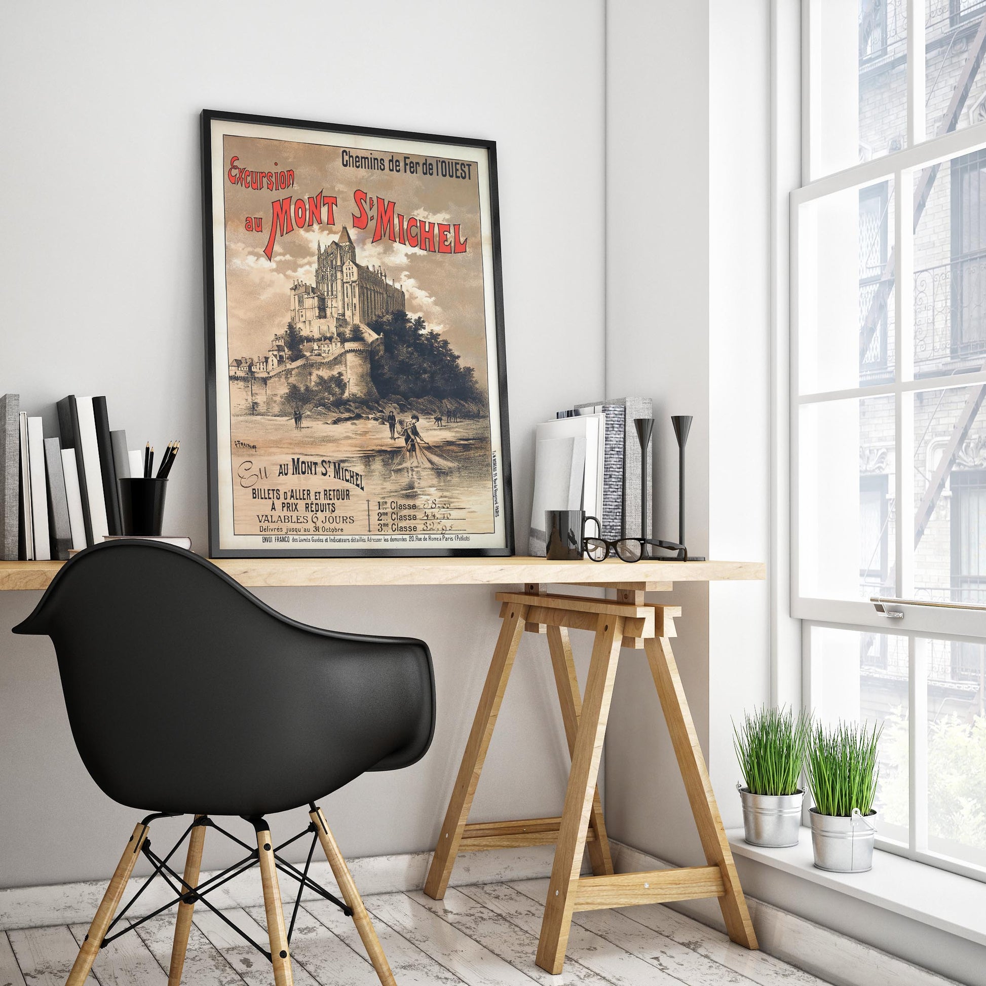 Founded in 1855, the Chemins de Fer de l'Ouest was a major railway company that played a crucial role in the development of tourism in France by making distant and picturesque destinations accessible to the public. This poster not only highlights the allure of Mont Saint-Michel but also reflects the historical significance of the rail route that connected travelers to this stunning landmark.