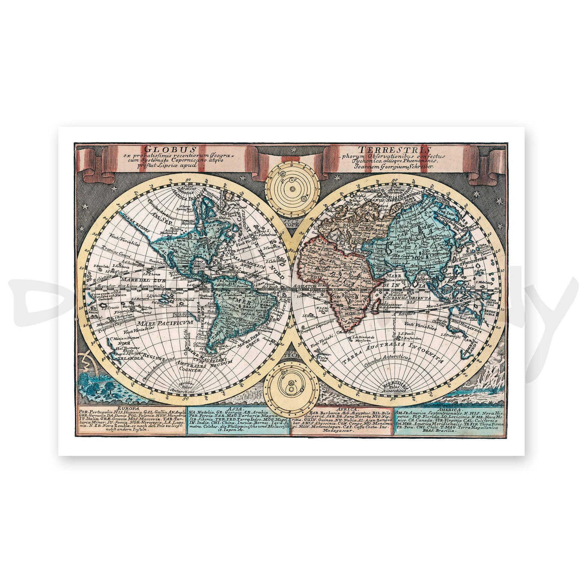 Early 18th Century Globus Terrestris World Map - Digital Download