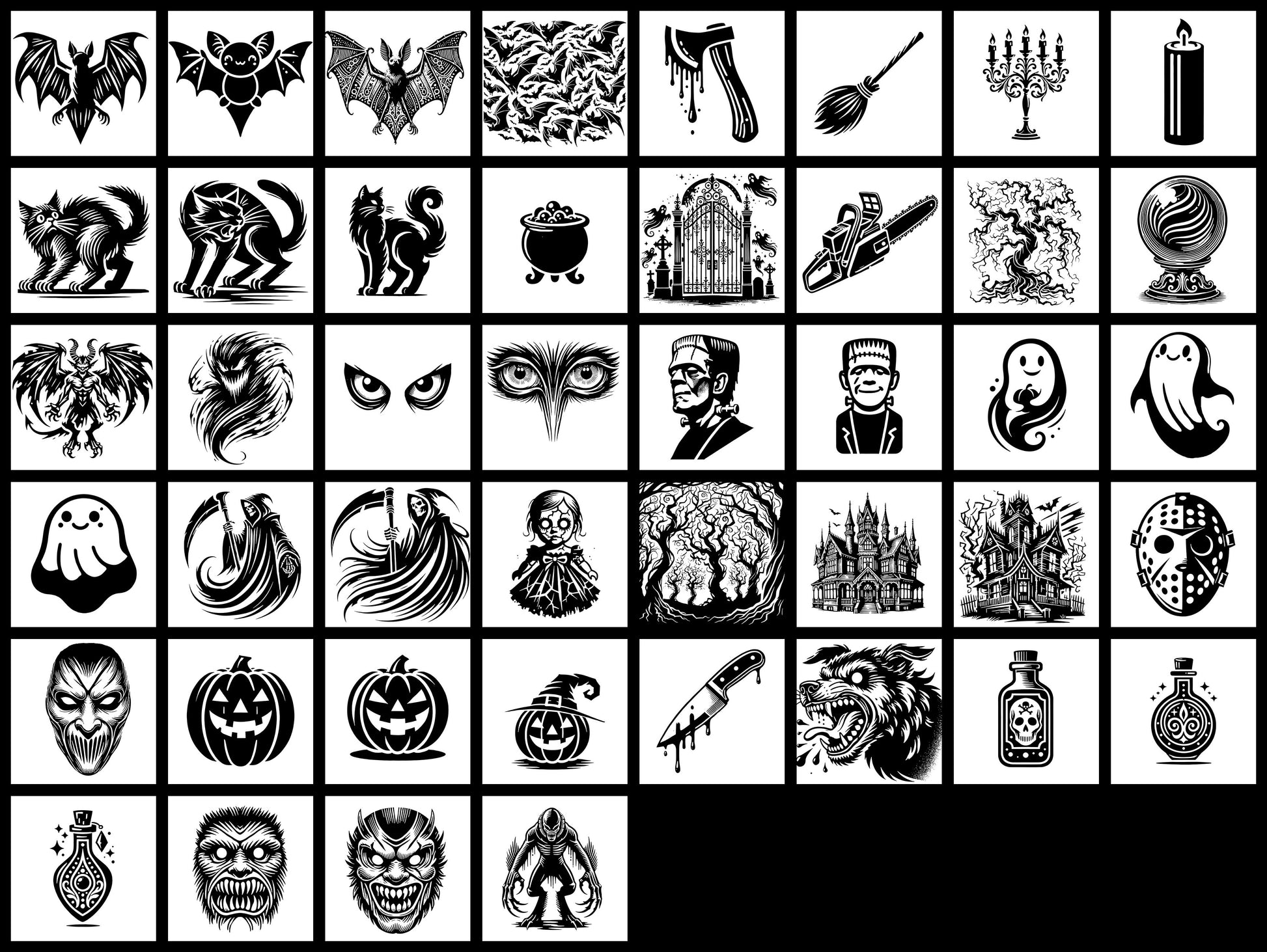 But these aren’t just for the creatives - they’re for anyone who feels the thrill of Halloween in their heart. Imagine these designs on your walls, on your merchandise, or as part of your next spooky craft project. The possibilities are as endless as the stars in a dark night sky. From creating custom Halloween-themed apparel to designing unique spooky posters or scrapbooks, these illustrations are your ticket to crafting something that truly stands out.