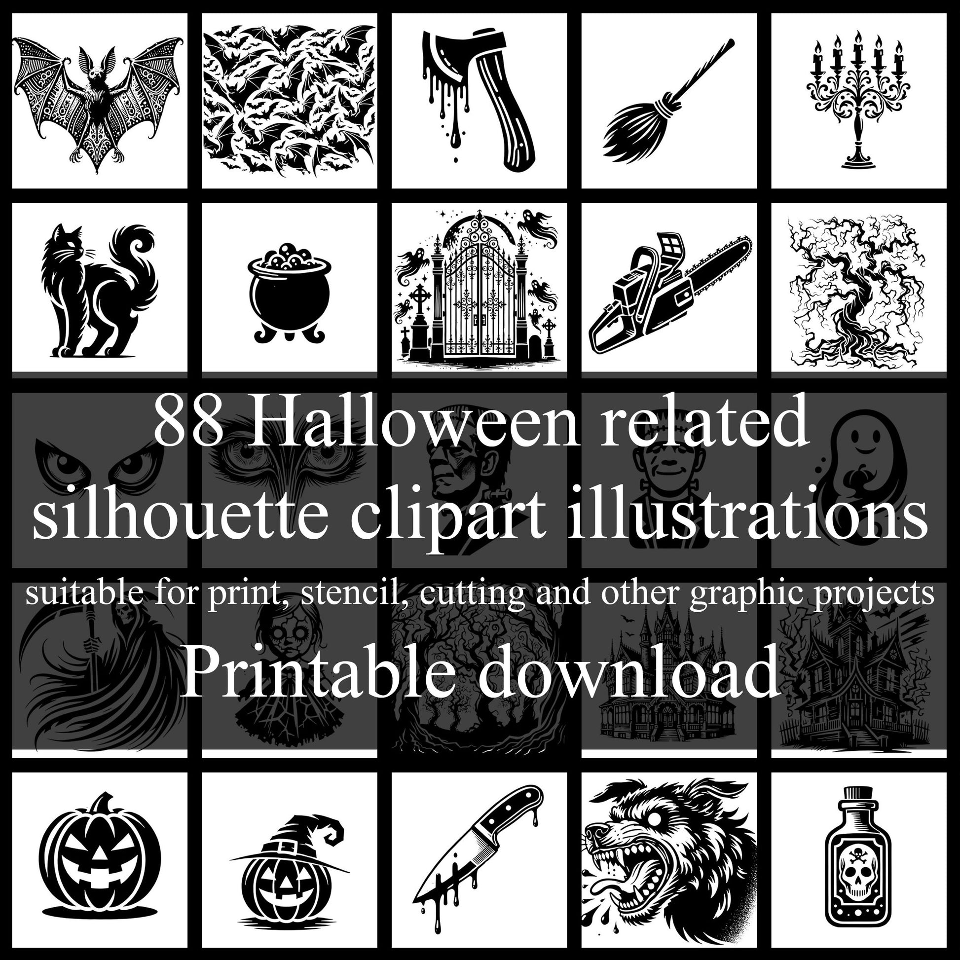 Haunt Your Projects with 88 Spooky Silhouette Halloween Illustrations: Perfect for Clipart, Print, Crafts, and Creepy Graphic Design Projects