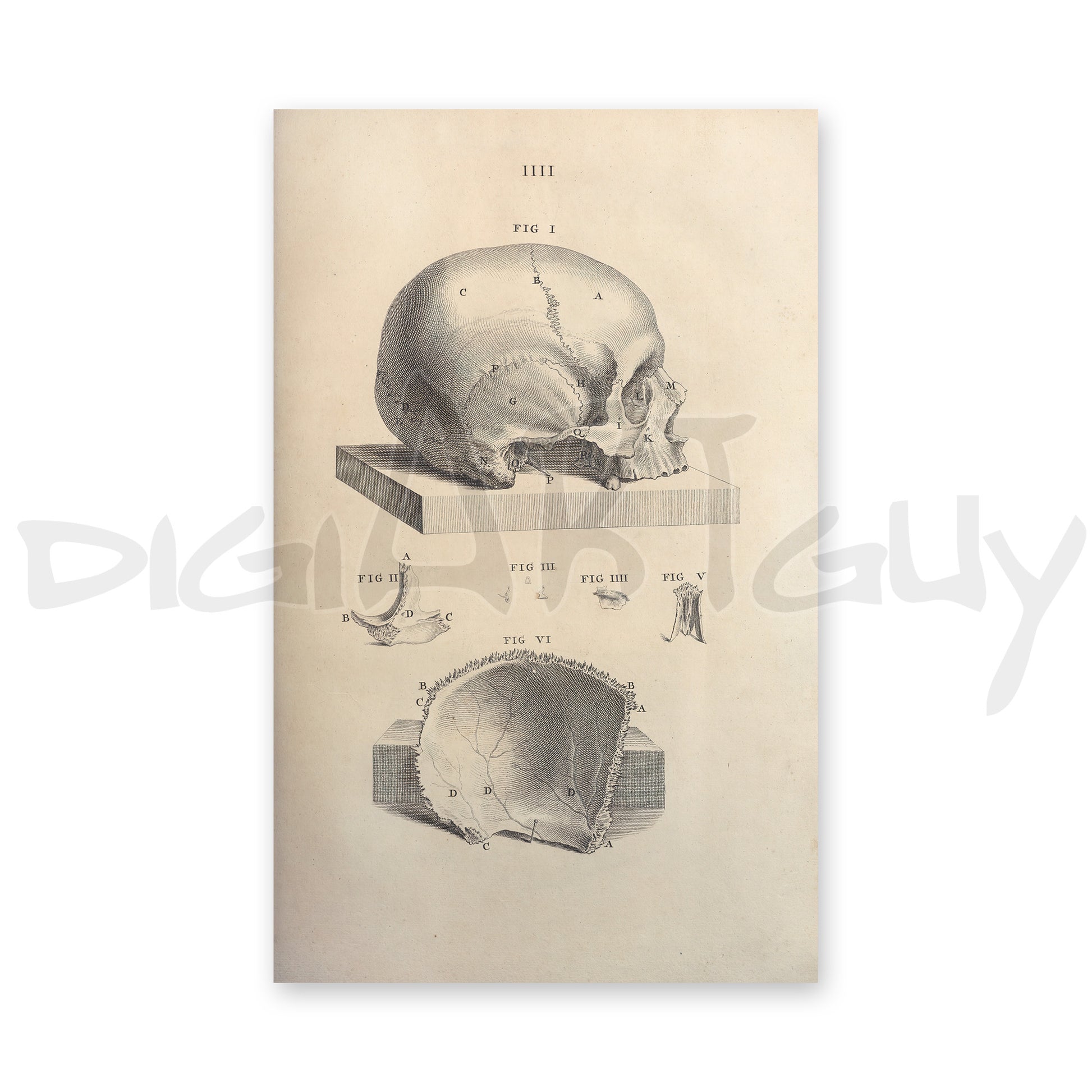 This beautiful set of human skull parts was found in an ancient book on anatomy and osteology, published in 1733.
