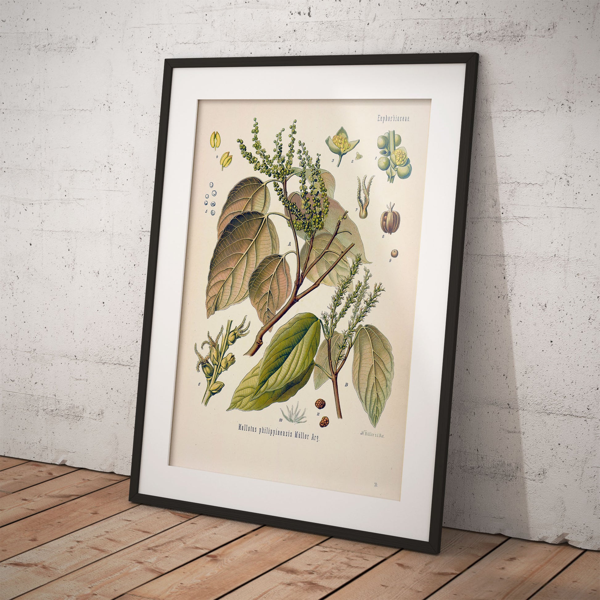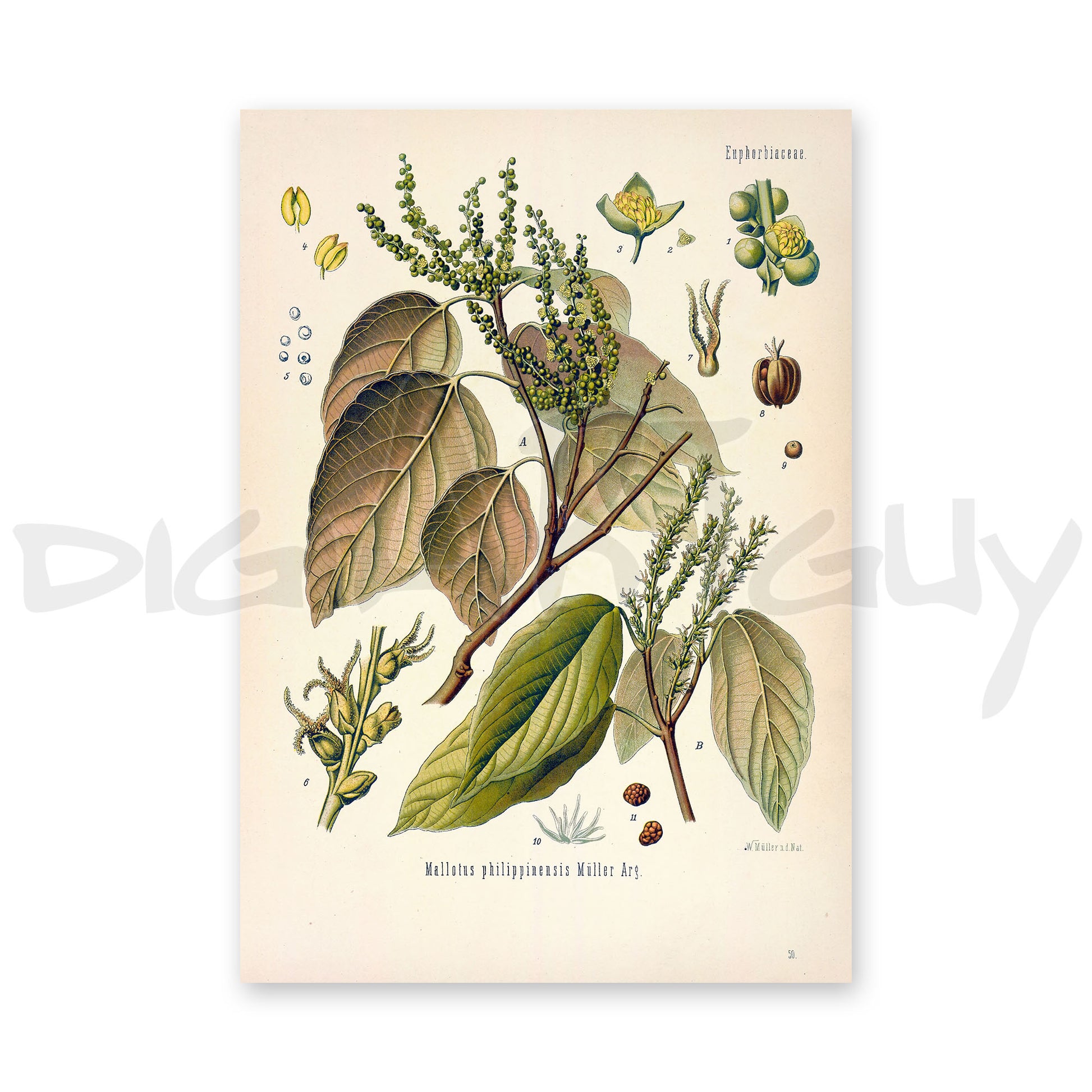 This is a digital image of Mallotus philippensis, with yhe common name Kamala tree. The image is sourced from Köhler's Medicinal Plants of 1887.