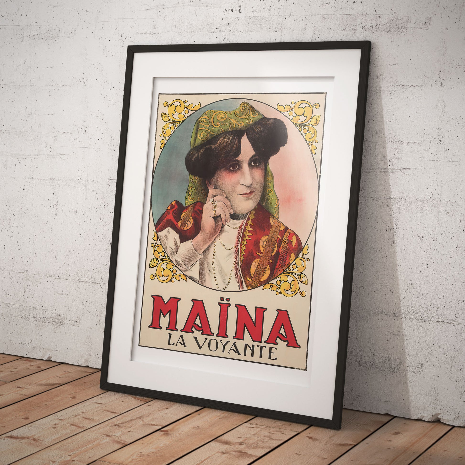 The vintage Maina La Voyante poster, created by Louis Galices in 1910, is an exquisite example of the Art Nouveau movement that was prevalent during the early 20th century, and is perhaps the most popular recognized art movement that emerged in the Belle Époque period.