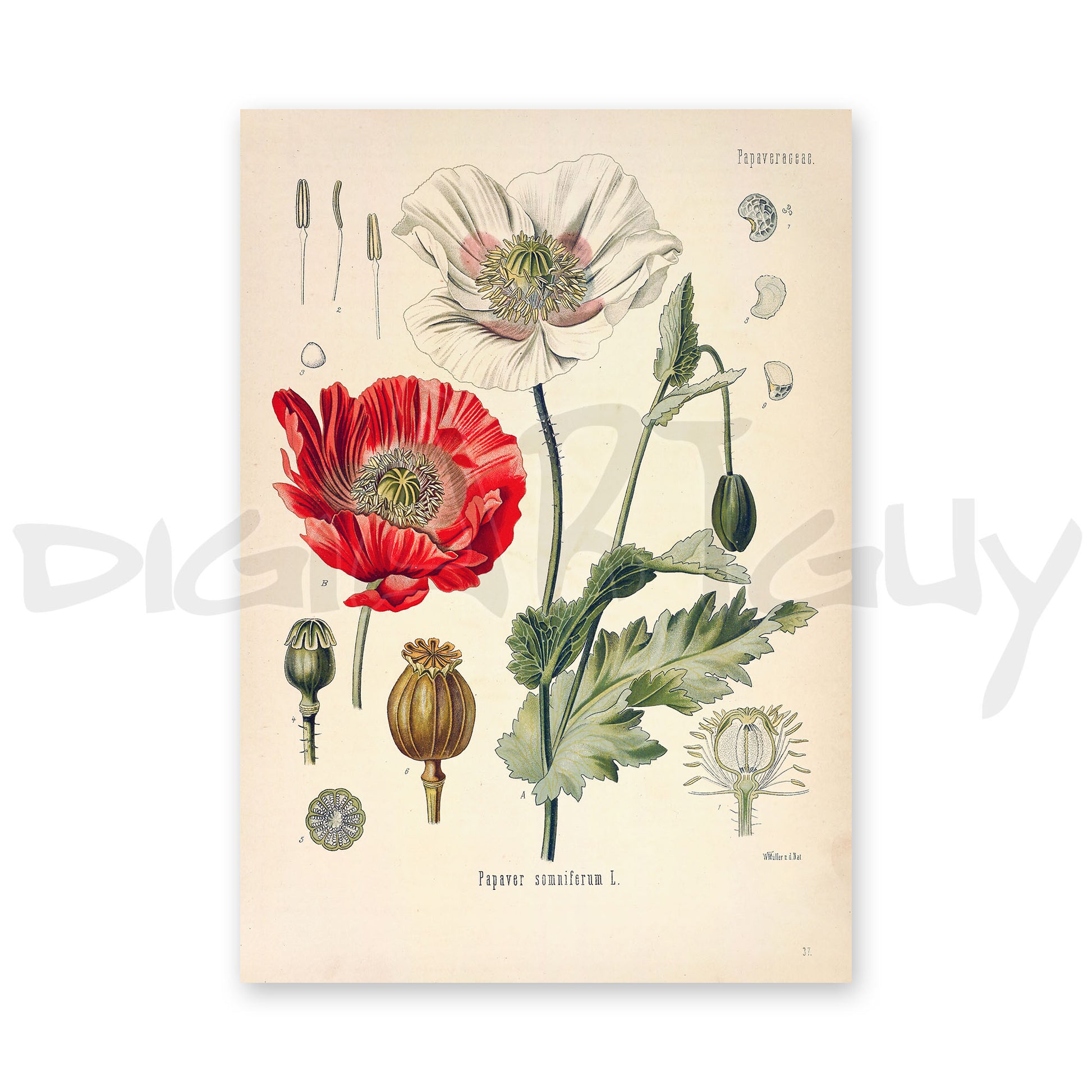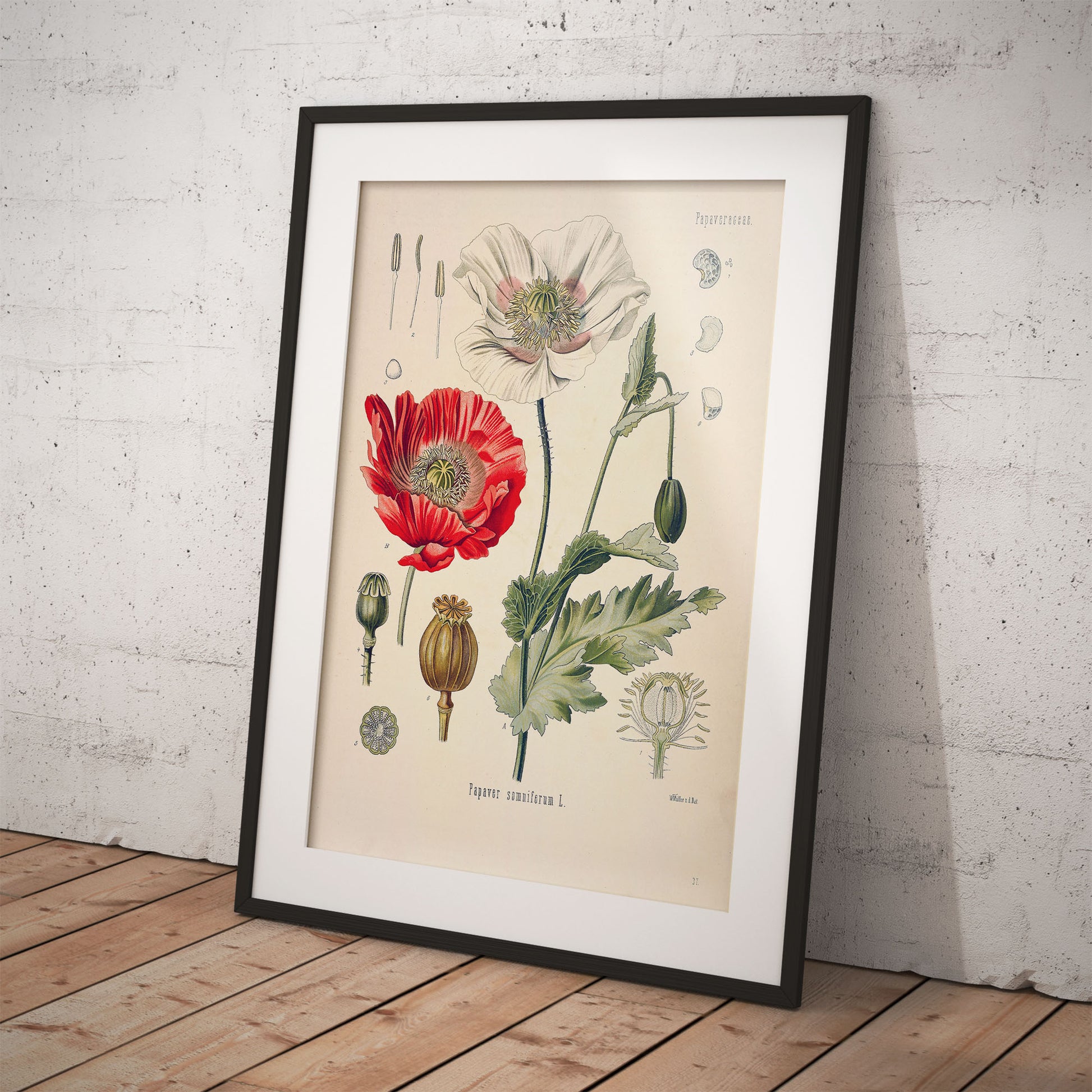 This digital image features the Opium poppy, scientifically known as Papaver somniferum, sourced from Köhlers Medicinal Plants. Originally published in 1887, this image has been meticulously enhanced and upscaled to provide you with the highest quality resolution possible. Whether you are creating a personal poster or incorporating it into your commercial projects, this image is guaranteed to captivate your audience with its stunning visual appeal.