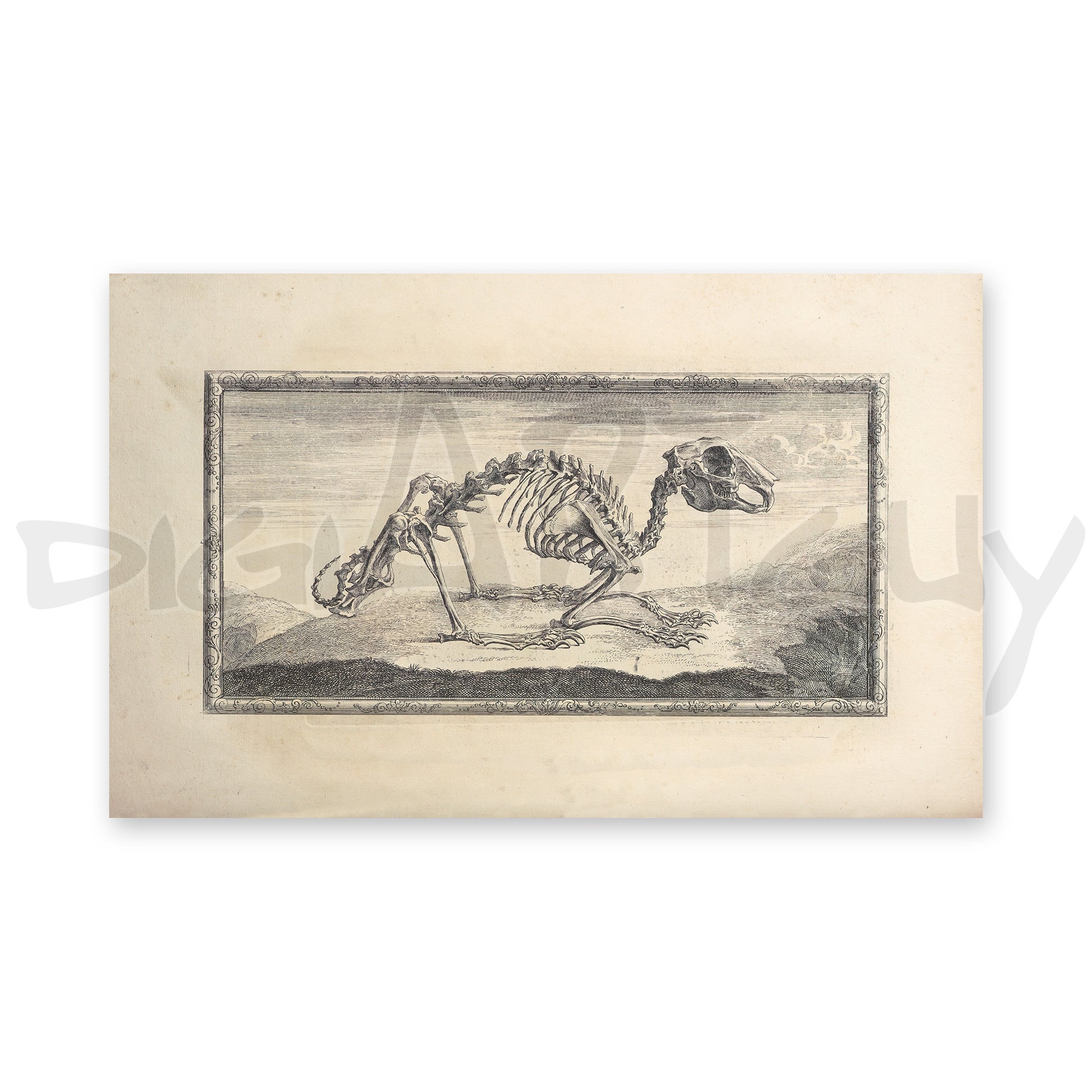 This amazing vintage illustration of the skeleton of a rabbit, was found in a beautiful old book on anatomy and osteology, made in 1733. Here it was photographed, digitally processed and enlarged, so you can print it yourself and use it as poster or in your many projects.