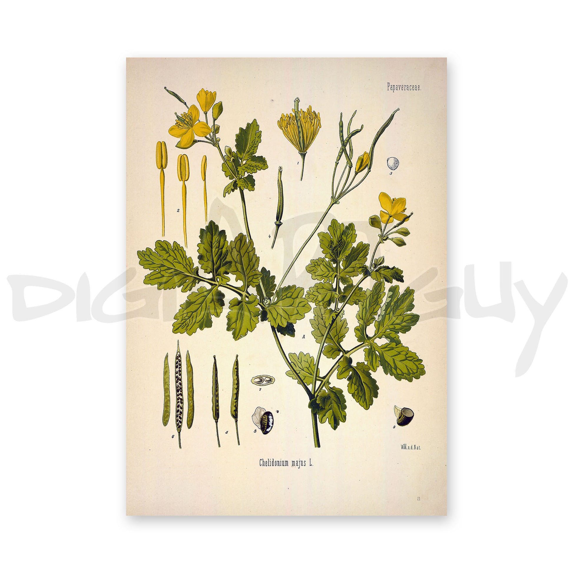 This digital rendering presents the Chelidonium majus, also known as the greater celandine, in all its glory. The illustration is a stunning masterpiece sourced from Köhlers Medicinal Plants, or Köhlers Medizinal Pflanzen in its original language. This historical botanical art dates back to around 1887, making it an invaluable piece of art.