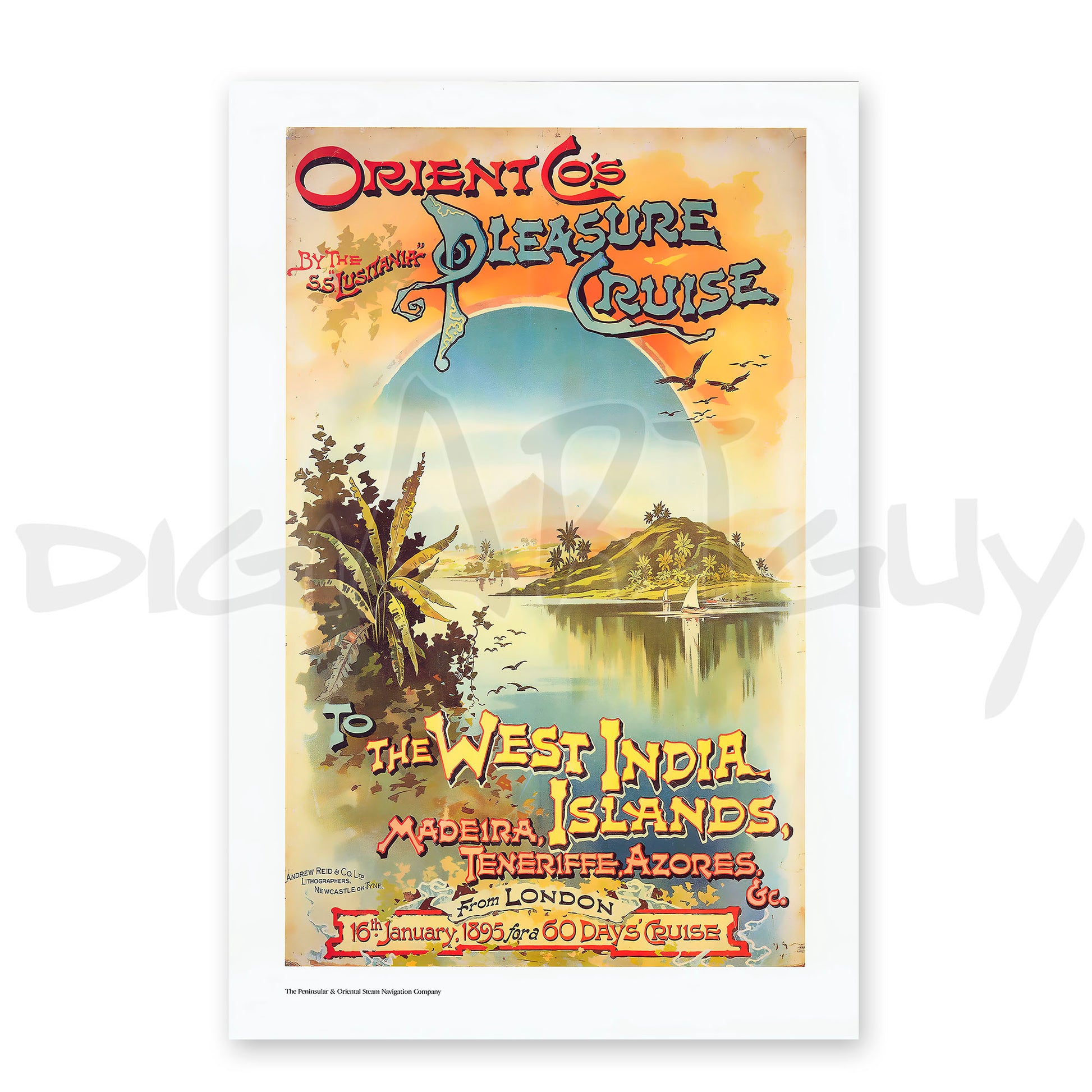 Vintage 1895 Orient Co.'s Pleasure Cruise Poster - SS Lusitania to Exotic Destinations