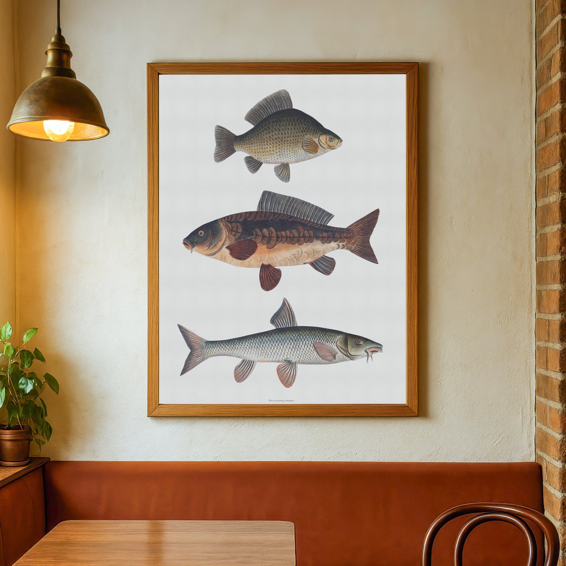 Gain immediate access to an exceptional piece of natural history art with this digital download of our vintage fish chart. This file is ideal for those who desire the flexibility to print themselves, effortlessly bringing three classic European carp species into their home decor. The illustrations faithfully replicate those from Marcus Elieser Bloch's seminal work "Allgemeine Naturgeschichte der Fische," published in the late 1700s (1782-1795).
