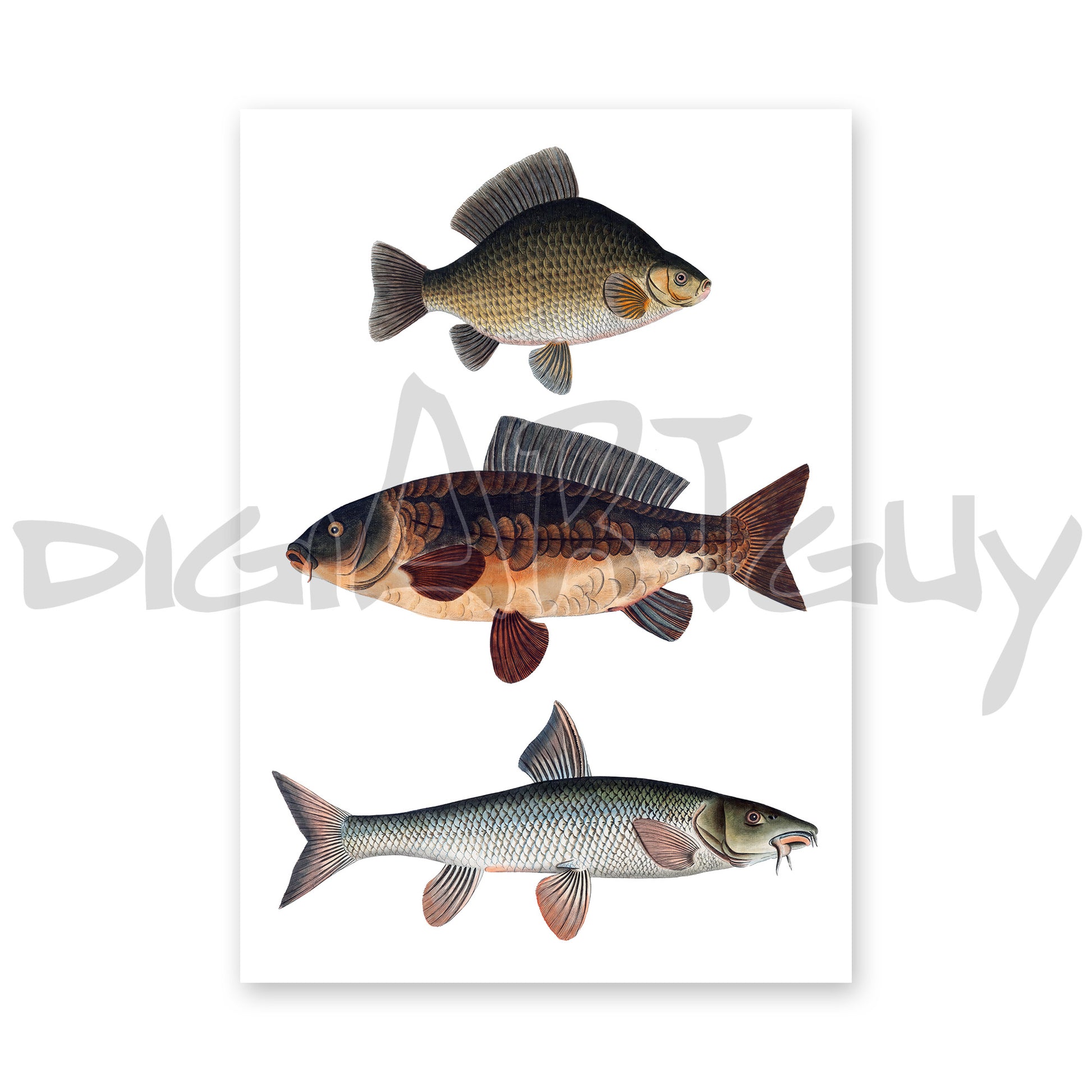 Vintage European Fish Art | Crucian Carp, Common Carp, Barbel | Digital Download | Bloch 18th Century