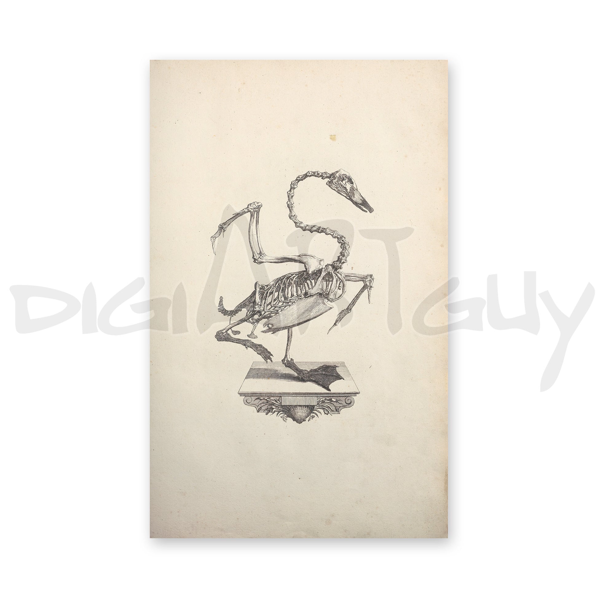 In a beautiful old book on anatomy and osteology, this amazing vintage illustration of a swan skeleton was found. Here it is photographed, digitally processed and enlarged, so you can print it yourself and use it as poster or in your many projects.