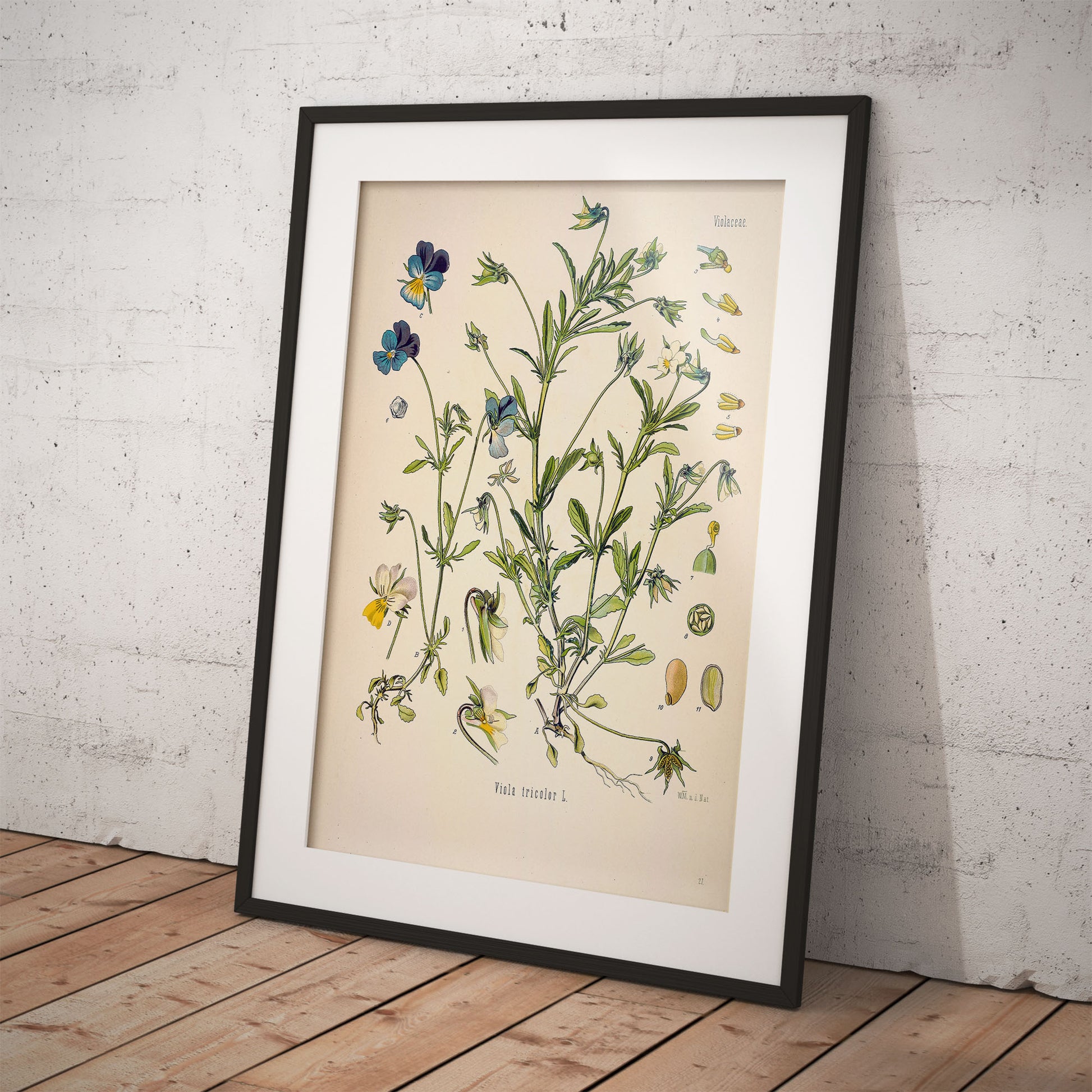Please take a moment to appreciate this stunning digital rendering of the Viola tricolor, also known as heartsease or wild pansy. This exquisite illustration is sourced from the renowned Köhlers Medicinal Plants collection, which boasts a vast array of botanical illustrations that have stood the test of time. Dating back to approximately 1887, this particular masterpiece holds immense historical and cultural value.